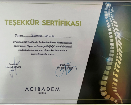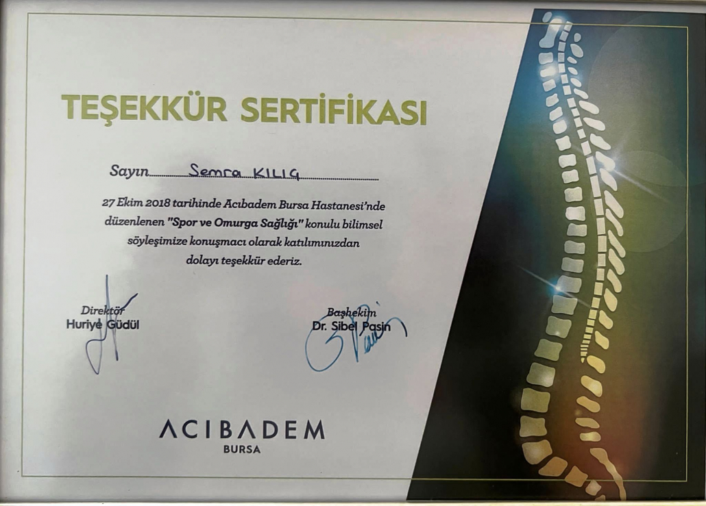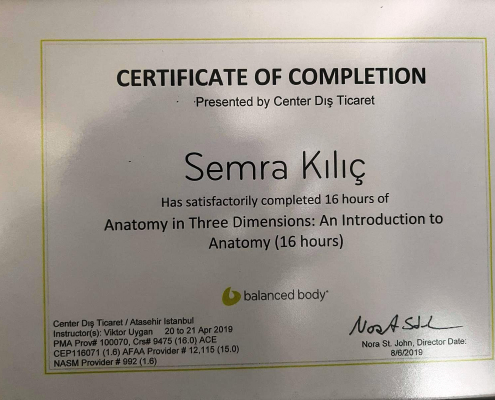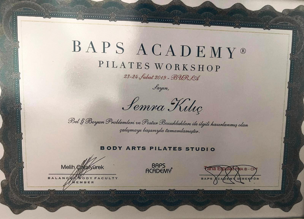Uzman hekim danışmanlığında birçok kişiyle özel ders formatında tedavi edici egzersizleri uygulayarak hayat kalitelerini yükseltmeleri konusunda rehberlik etti ve iyileşmelerine katkıda bulundu. Yaşadığı bunca yıllık deneyimden sonra 2014 yılında Sempilates training studio yu kurarak birçok profesyonel sporcuya sakatlıklardan korunma ve sakatlık sonradında tedavi edici antrenmanlar yaptırarak profesyonellerin yaşamına farklı bir bakış kattı. Semra Kılıç Pilatesin tedavi edici ve geliştirici egzersizlerini her alanda kullanan bir eğitmen olarak deneyim ve tecrübelerini Bursa Sempilates Training Studioda sizlerle paylaşmaya devam ediyor.